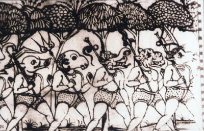 Originally, Asura, in the earliest hymns of the Rig Veda, meant any supernatural spirit, either good or bad. Since the /s/ of the Indic linguistic branch is cognate with the /h/ of the Early Iranian languages, the word Asura, representing a category of celestial beings, is a cognate of Ahura (Mazda), the Supreme God of the monotheistic Zoroastrians. Ancient Hinduism tells that Devas (also called suras) and Asuras are half-brothers, sons of the same father Kashyapa; although some of the Devas, such as Varuna, are also called Asuras. Later, during Puranic age, Asura and Rakshasa came to exclusively mean any of a race of anthropomorphic, powerful, possibly evil beings. Daitya (lit. sons of the mother “Diti”), Rakshasa (lit. from “harm to be guarded against”), and Asura are incorrectly translated into English as “demon”.