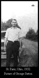 St. Paris, Ohio- George Sutton near noon, 05/1932. Note the date on the car’s plate in the photo. The owner of the photo album says there were no electric street lights along this road in those days. The dark object seen to Sutton’s left has never been explained.