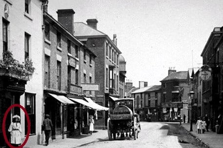 A man named Tony O’Rahilly captured this image of a mysterious girl standing amid the flames as Wem Town Hall in Shropshire, England burned to the ground in 1995.